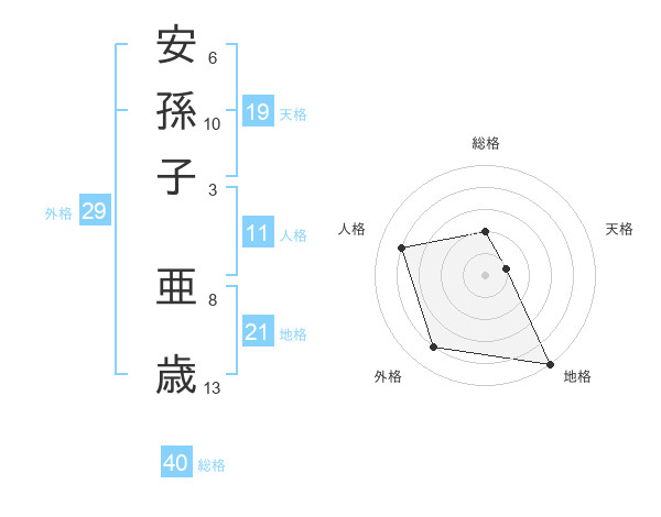 安孫子 亜歳さんを姓名の画数から五運を鑑定
