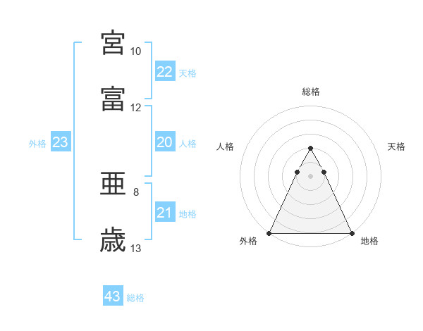 宮富 亜歳さんの総格は43画の2点!
