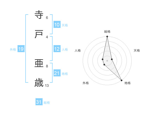 寺戸 亜歳さんを姓名の画数から五運を鑑定