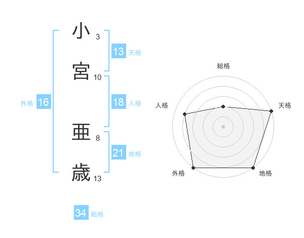 小宮 亜歳さんの天格は13画の5点!