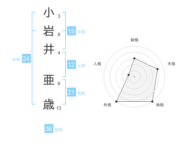 小岩井 亜歳さんを姓名の画数から五運を鑑定
