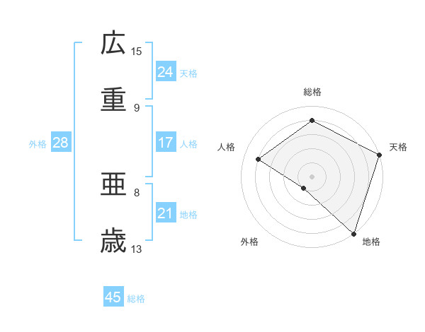 広重 亜歳さんを姓名の画数から五運を鑑定