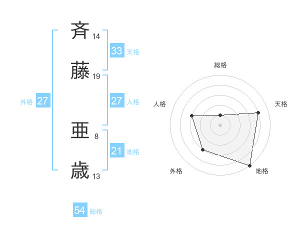 斉藤 亜歳さんを姓名の画数から五運を鑑定
