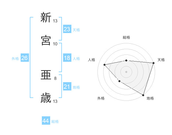 新宮 亜歳さんを姓名の画数から五運を鑑定