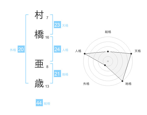 村橋 亜歳さんの総格は44画の2点!