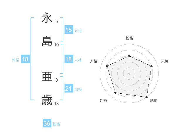 永島 亜歳さんを姓名の画数から五運を鑑定