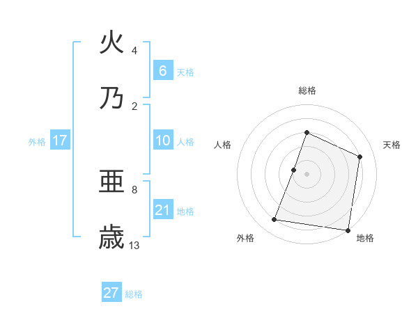 火乃 亜歳さんを姓名の画数から五運を鑑定
