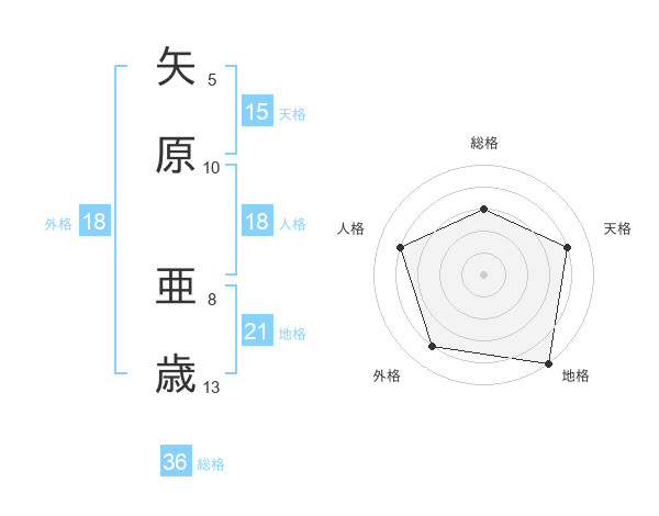 矢原 亜歳さんの総格は36画の3点!