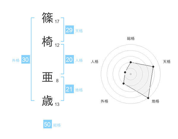 篠椅 亜歳さんの総格は50画の2点!
