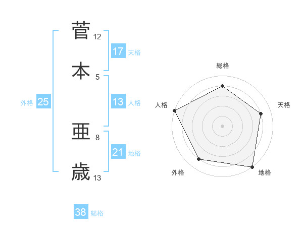 菅本 亜歳さんを姓名の画数から五運を鑑定