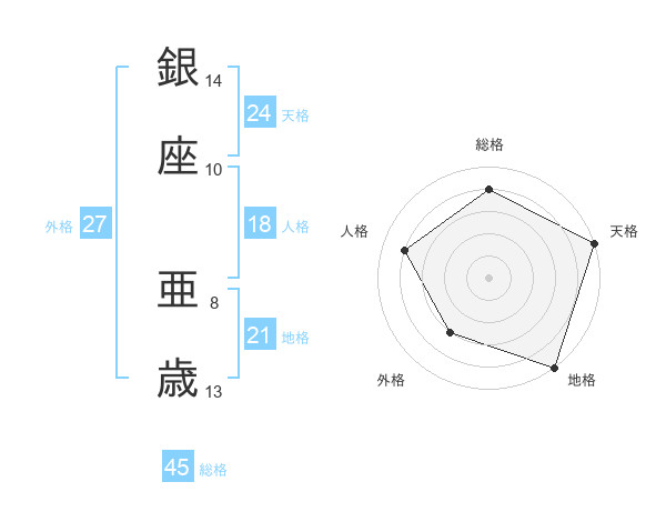 銀座 亜歳さんの総格は45画の4点!
