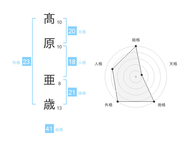 髙原 亜歳さんを姓名の画数から五運を鑑定