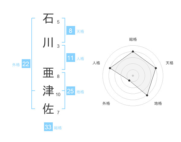石川 亜津佐さんを姓名の画数から五運を鑑定