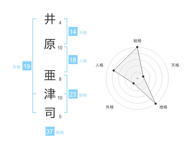 井原 亜津司さんを姓名の画数から五運を鑑定