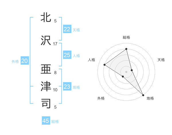 北沢 亜津司さんを姓名の画数から五運を鑑定