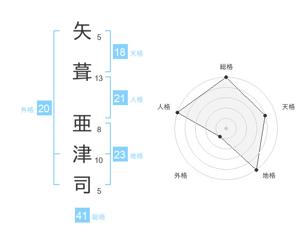 矢葺 亜津司さんを姓名の画数から五運を鑑定