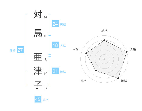 対馬 亜津子さんの天格は24画の5点!