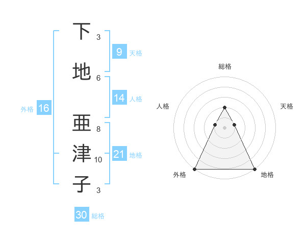 下地 亜津子さんを姓名の画数から五運を鑑定