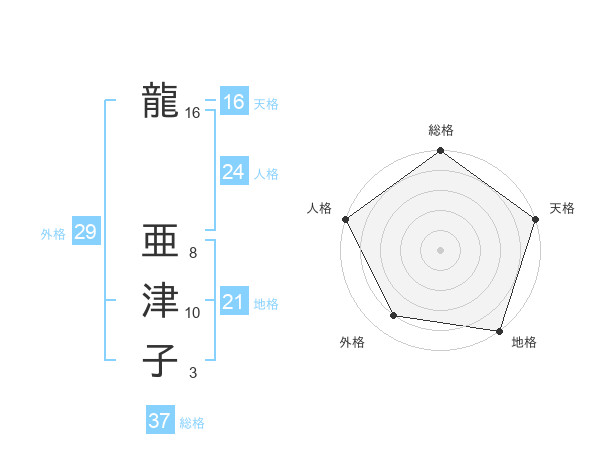 龍 亜津子さんの総格は37画の5点!