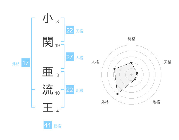 小関 亜流王さんを姓名の画数から五運を鑑定
