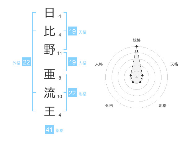 日比野 亜流王さんを姓名の画数から五運を鑑定
