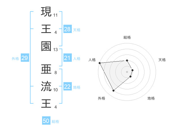 現王園 亜流王さんを姓名の画数から五運を鑑定