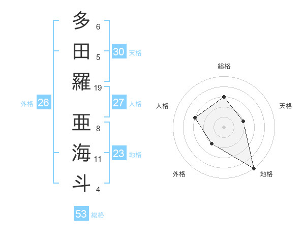 多田羅 亜海斗さんを姓名の画数から五運を鑑定