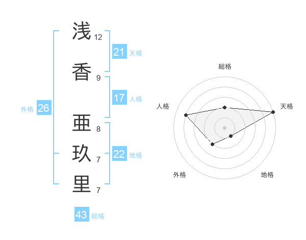 浅香 亜玖里さんの天格は21画の5点!