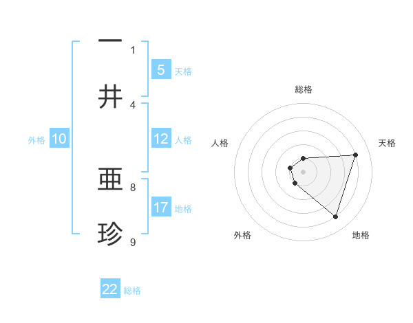 一井 亜珍さんの総格は22画の1点!