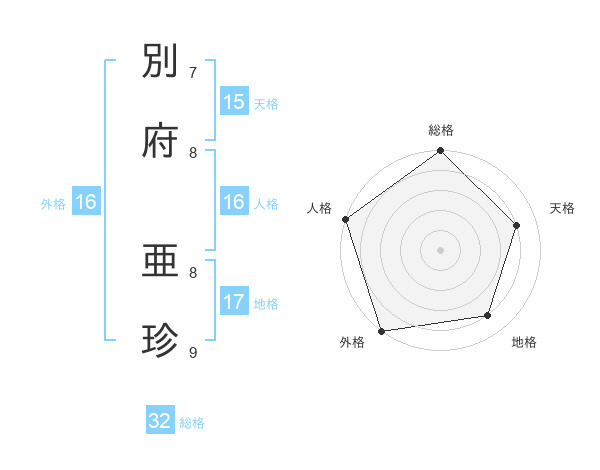 別府 亜珍さんを姓名の画数から五運を鑑定