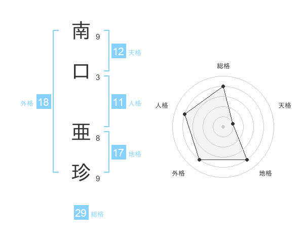 南口 亜珍さんの総格は29画の4点!
