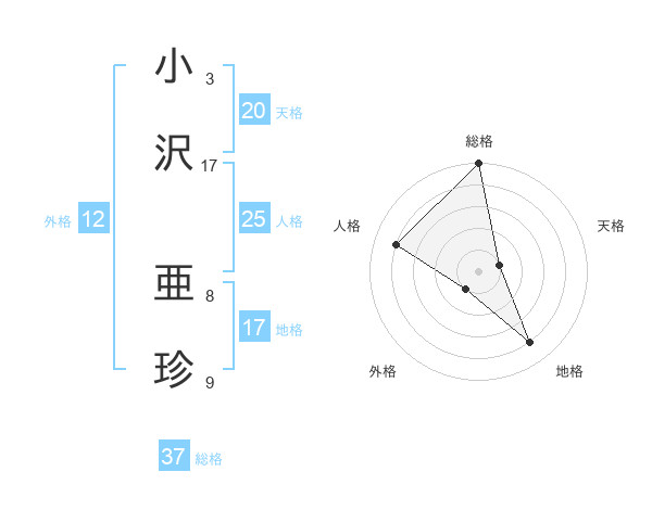 小沢 亜珍さんの総格は37画の5点!