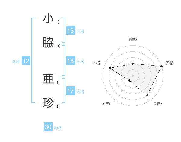 小脇 亜珍さんの天格は13画の5点!