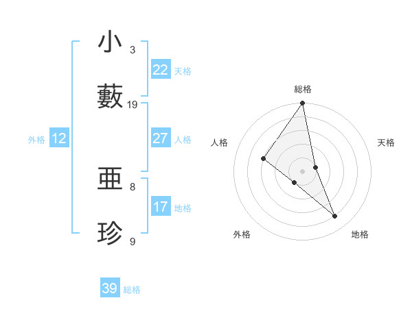 小藪 亜珍さんの天格は22画の1点!
