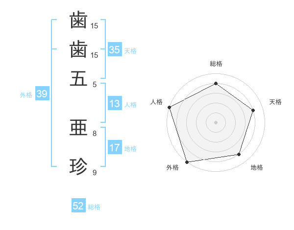 歯歯五 亜珍さんを姓名の画数から五運を鑑定
