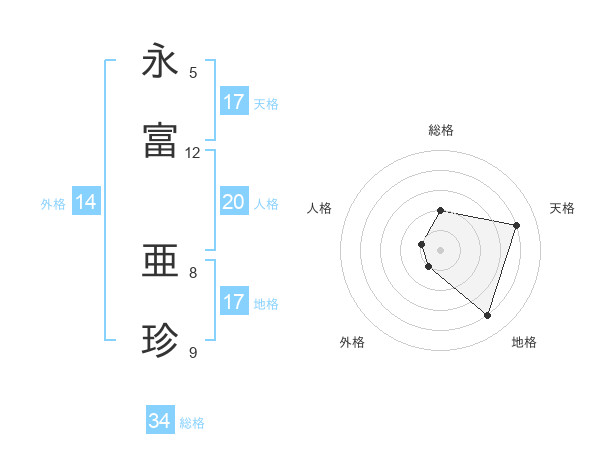永富 亜珍さんを姓名の画数から五運を鑑定