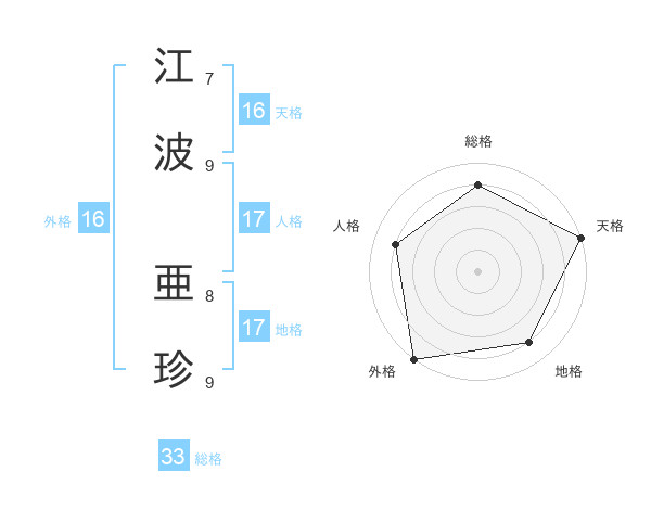 江波 亜珍さんの総格は33画の4点!