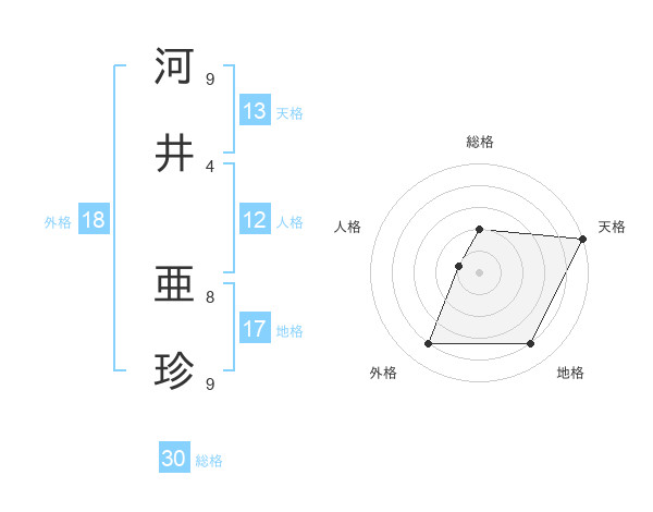 河井 亜珍さんの天格は13画の5点!