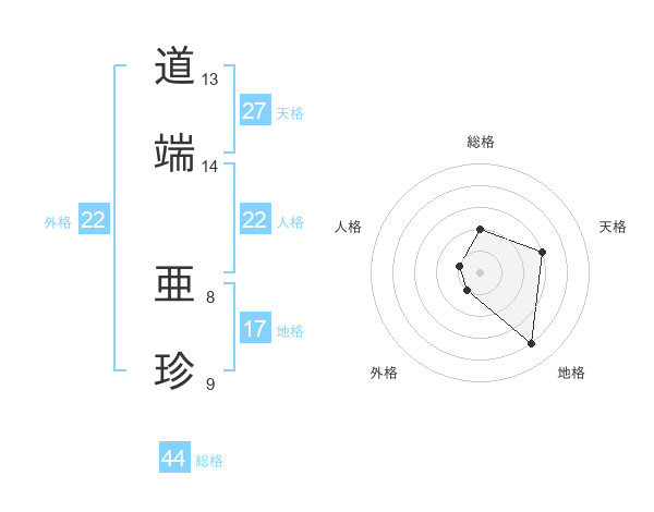 道端 亜珍さんの総格は44画の2点!
