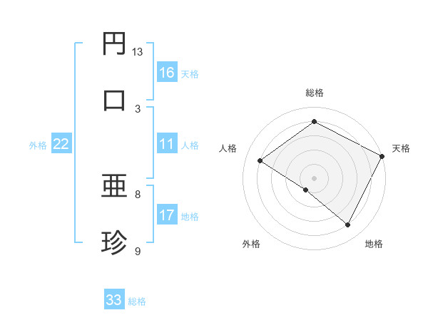 円口 亜珍さんの総格は33画の4点!