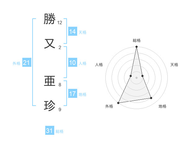 勝又 亜珍さんを姓名の画数から五運を鑑定