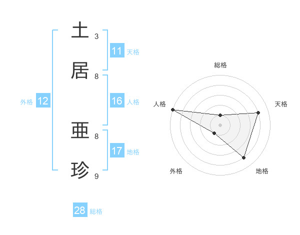 土居 亜珍さんを姓名の画数から五運を鑑定