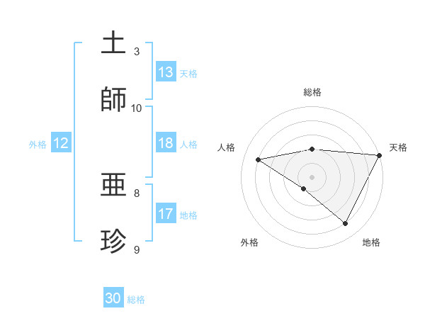 土師 亜珍さんを姓名の画数から五運を鑑定