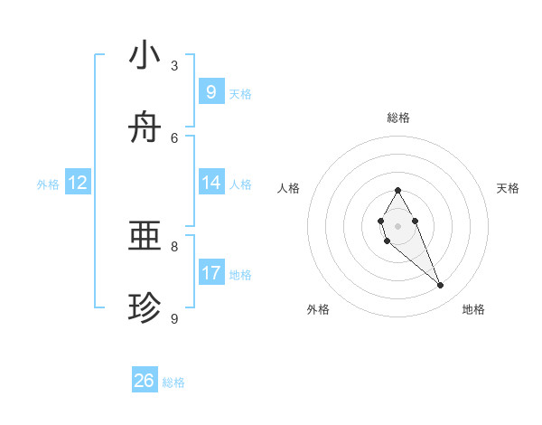 小舟 亜珍さんを姓名の画数から五運を鑑定