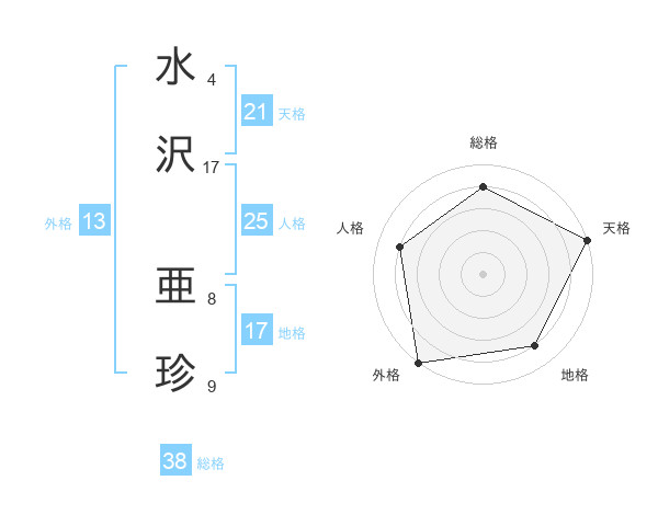 水沢 亜珍さんの天格は21画の5点!