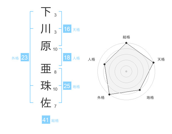 下川原 亜珠佐さんを姓名の画数から五運を鑑定