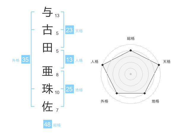 与古田 亜珠佐さんを姓名の画数から五運を鑑定