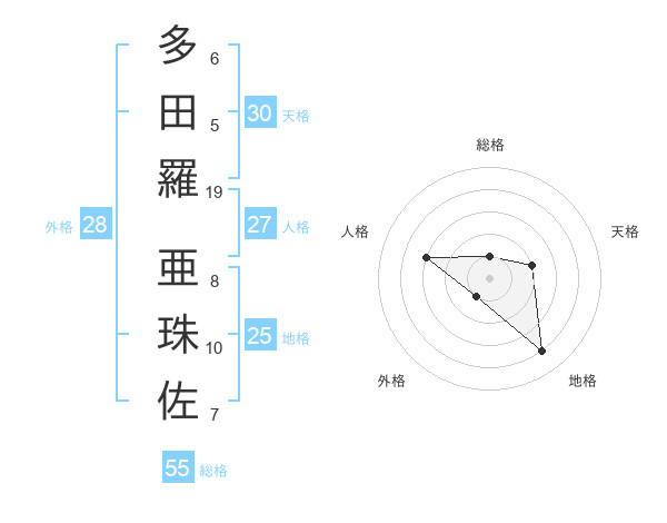 多田羅 亜珠佐さんを姓名の画数から五運を鑑定