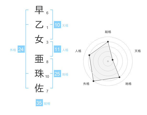 早乙女 亜珠佐さんの総格は35画の4点