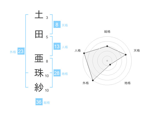 土田 亜珠紗さんを姓名の画数から五運を鑑定